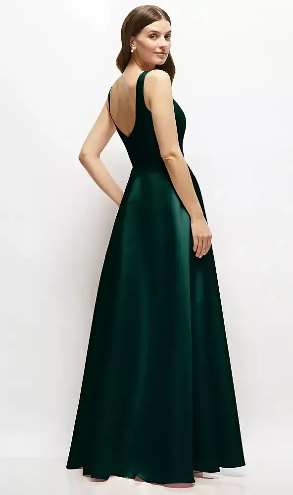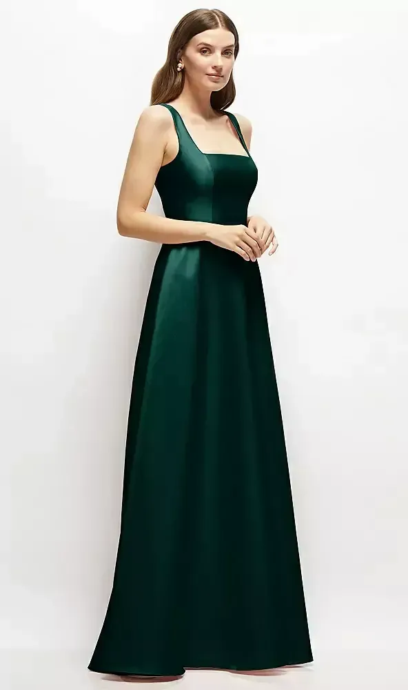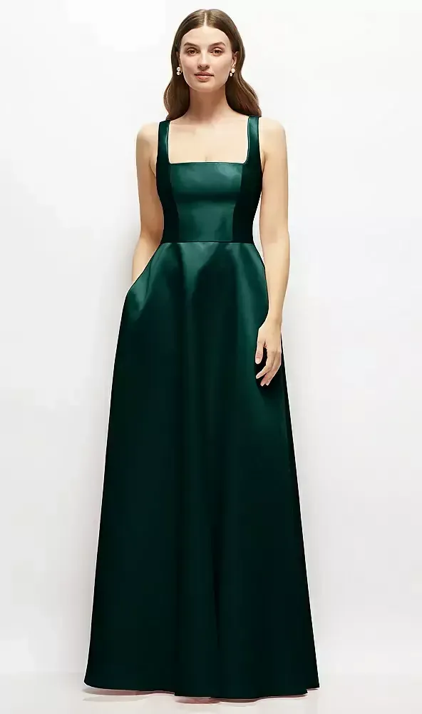 This chic satin twill maxi is all about timeless elegance with a modern edge. The lustrous gown rocks a sleek square neck that pairs perfectly with its swooshy full skirt, giving it a vibe that's both old-world and totally now. It's designed to flatter and float in all the right places. Plus, there are pockets to stash your essentials. This dreamy satin gown is simplicity with a statement, ready to turn heads at any upscale event.
